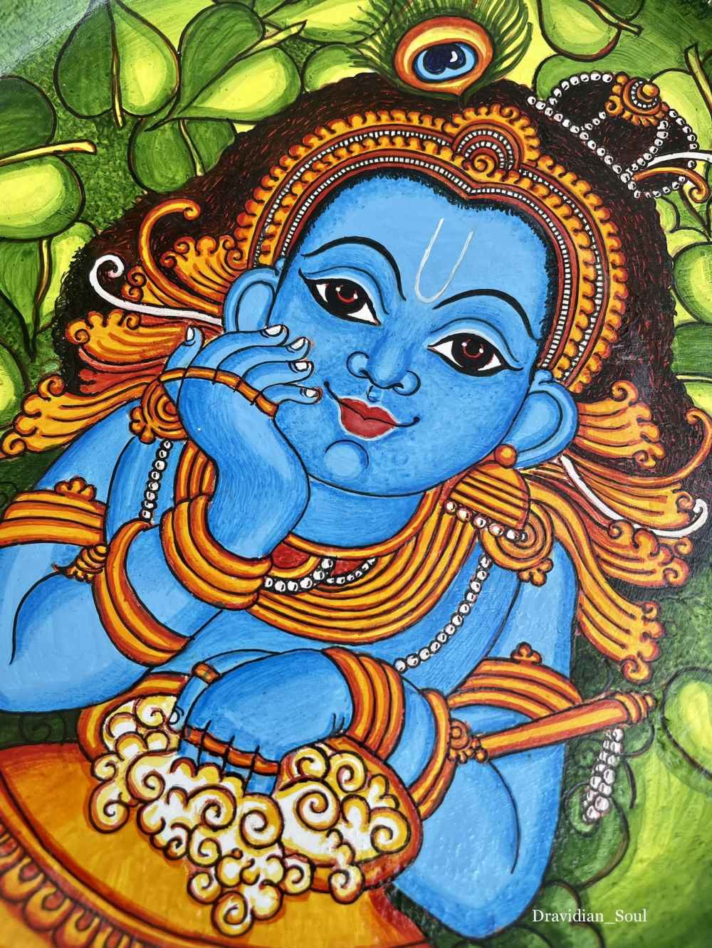 Handpainted in Kerala mural style painting give your home a traditional & ethnic aesthetics with this beautifully painted Lord Krishna, also called in various other names such as Mukunda, Murari, Gopala is an avatar of Vishnu, is an important deity ... Read More