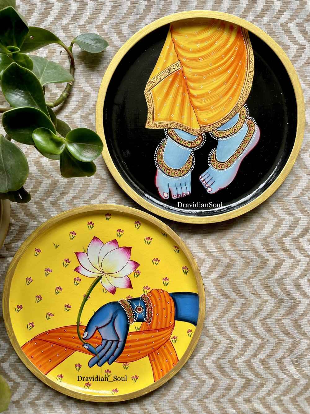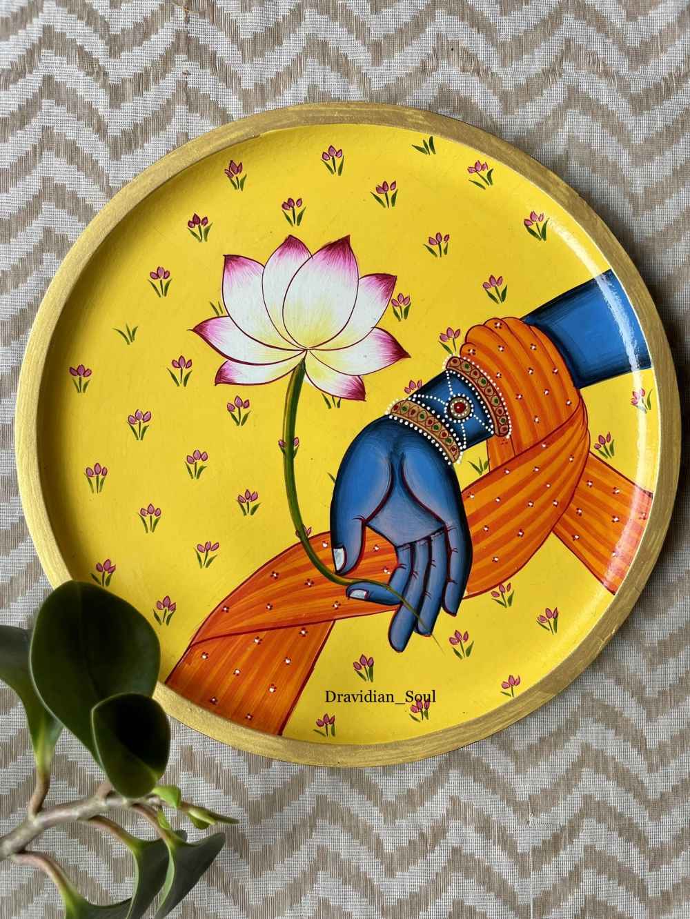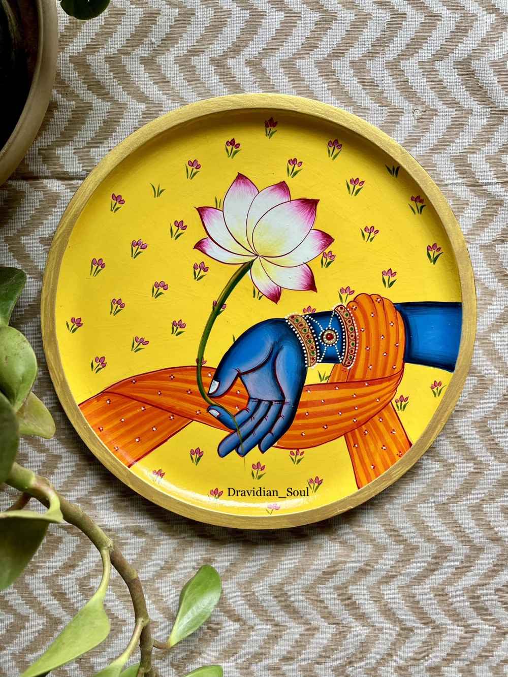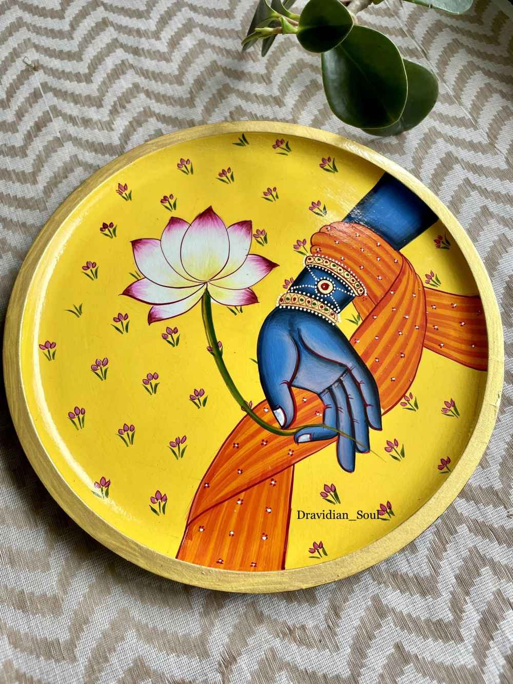 "Give your home a traditional & ethnic aesthetics with this beautifully handpainted Lord Krishna’s divine hand; You can mix match this unique Wallplate with the various other wall plate options available on our page to curate a stunning ... Read More