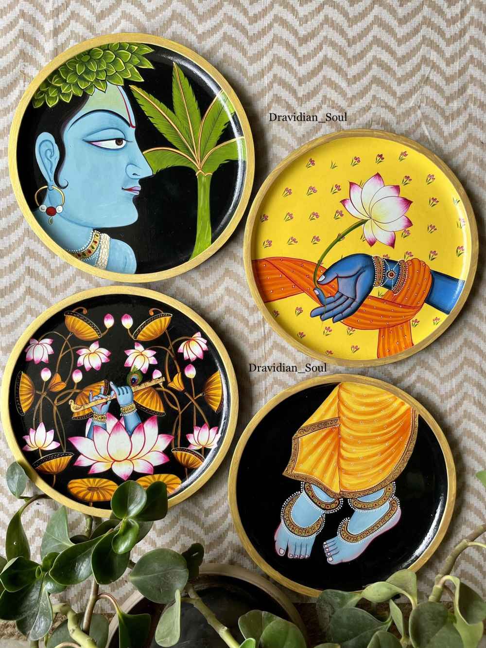 "Give your home a traditional & ethnic aesthetics with this beautifully handpainted Lord Krishna’s divine hand; You can mix match this unique Wallplate with the various other wall plate options available on our page to curate a stunning statement ... Read More