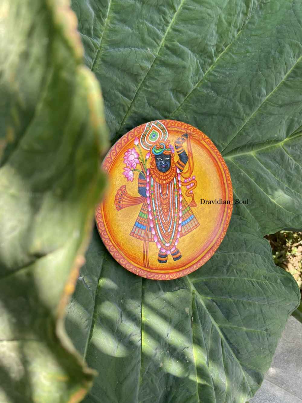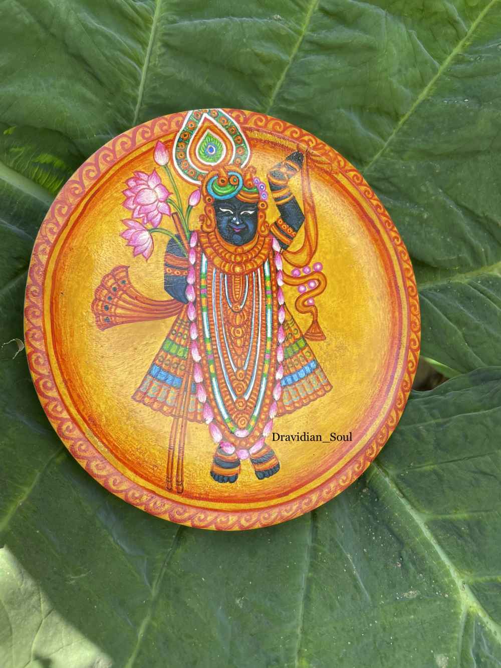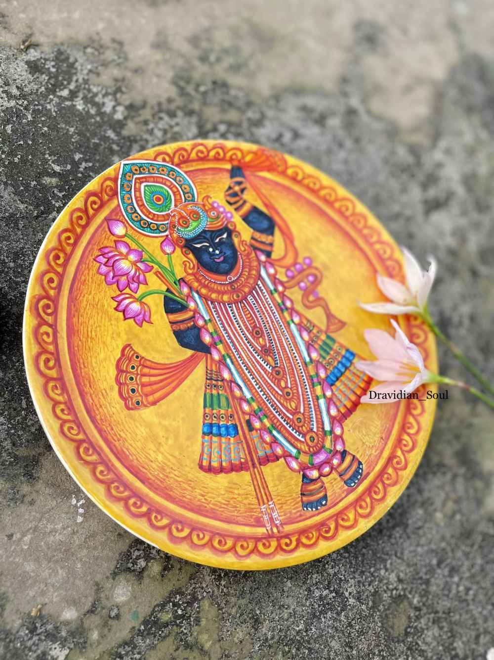 "LORD SHRINATHJI HANDPAINTED WALLPLATE Shrinathji is a form of Krishna, manifested as a seven-year-old balak or child when he lifted the Govardhana giri, with one arm raised. The image is depicted in the form of a single black marble idol, where ... Read More