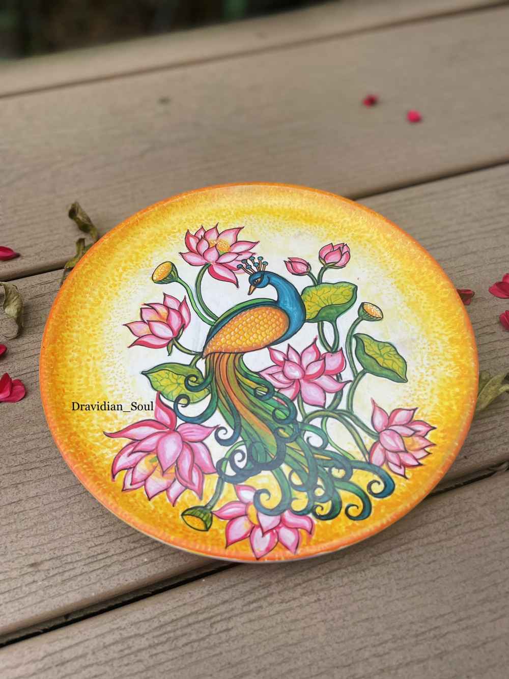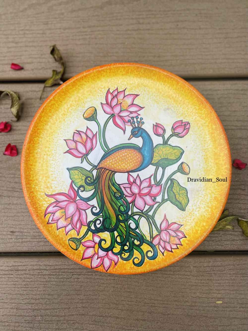 Handpainted Floral wall plate The Tamara/Lotus with our very own flamboyant Mayura/Peacock , when two most beautiful things come together they turn out to be divine.
