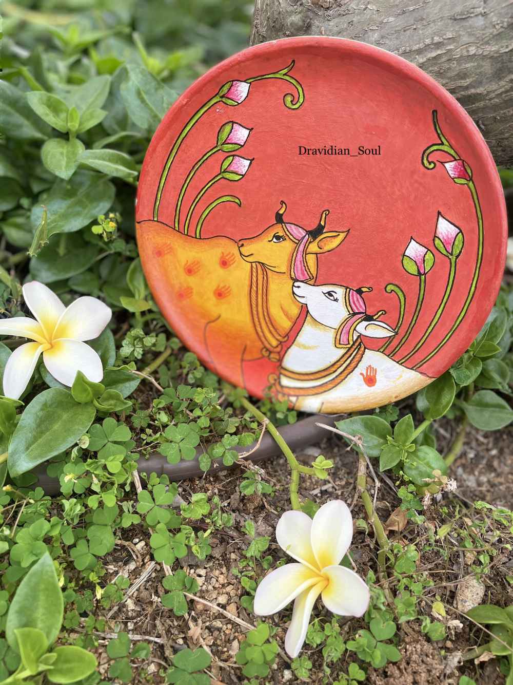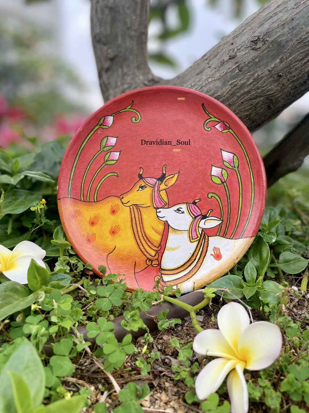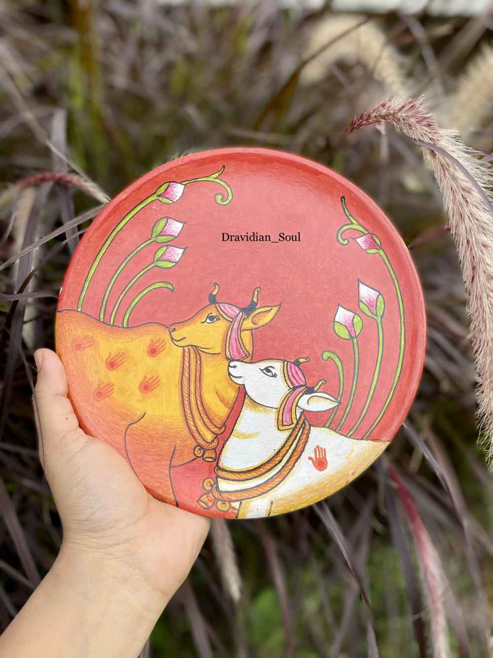 The Traditional Pichwai Cows with Lotus buds Handpainted Wallplate.These add such an ethnic & an aesthetic look to your space.You can Mix and Match the plates on our page to curate a stunning statement wall for your home.