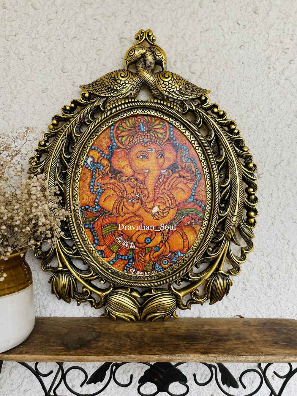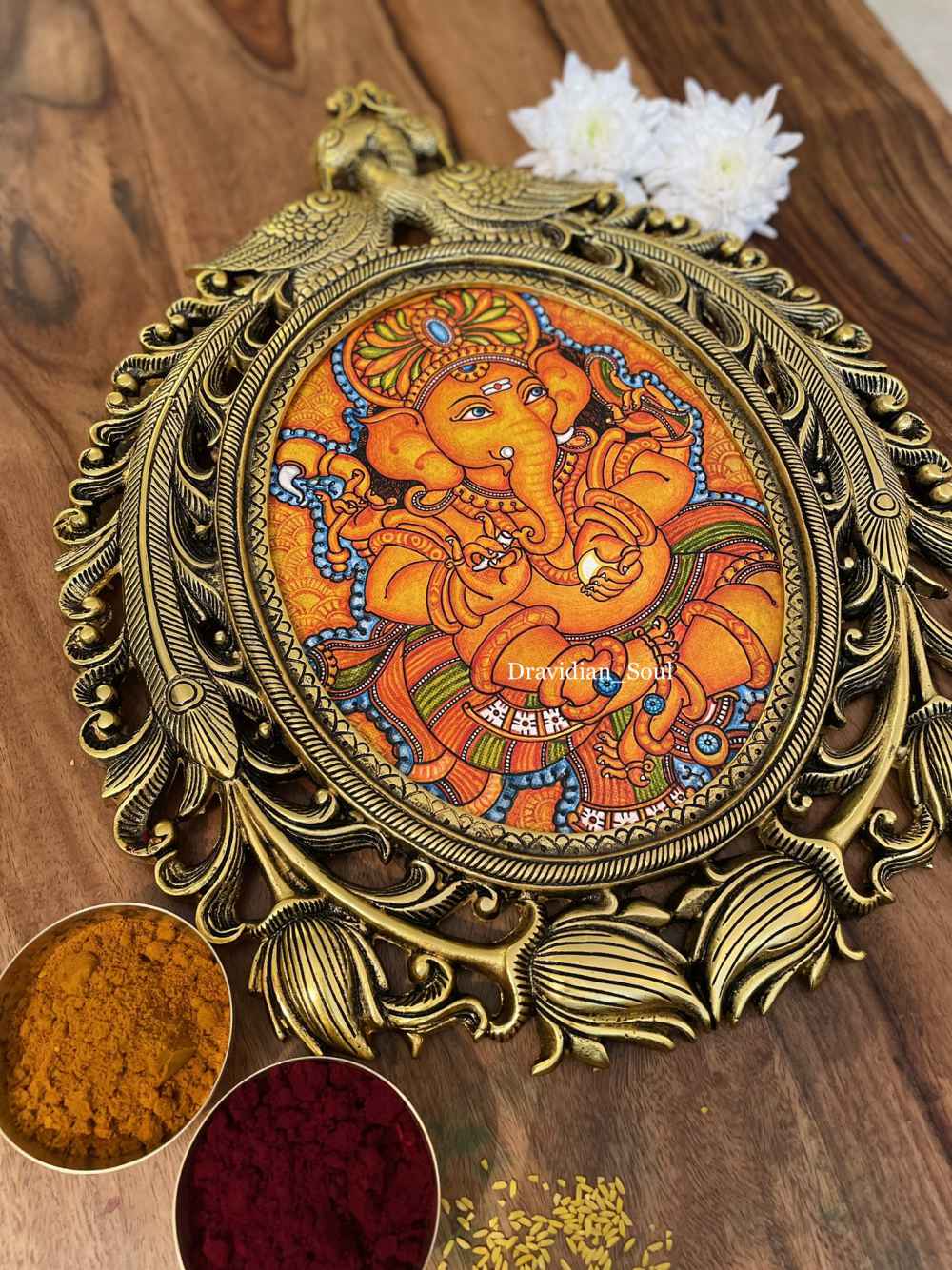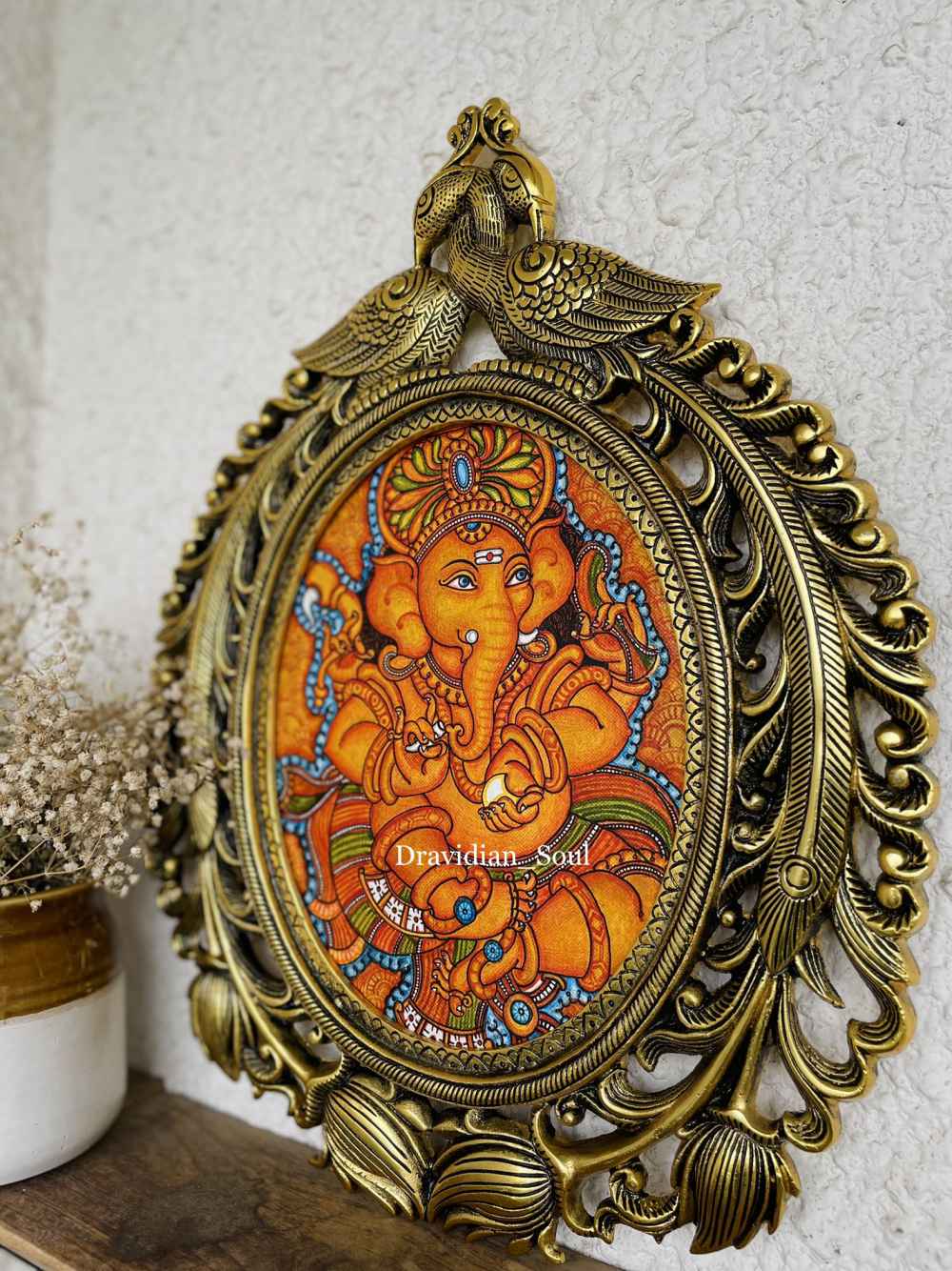 Lord Ganesha Hand Painted in Kerala Traditional Mural Painting style and inset in Brass Decorative Wall frame. “Vighnaharatha”, one of the names of Lord Ganesha, means “Remover of Obstacles”. This intricately painted Lord is sure to add ... Read More