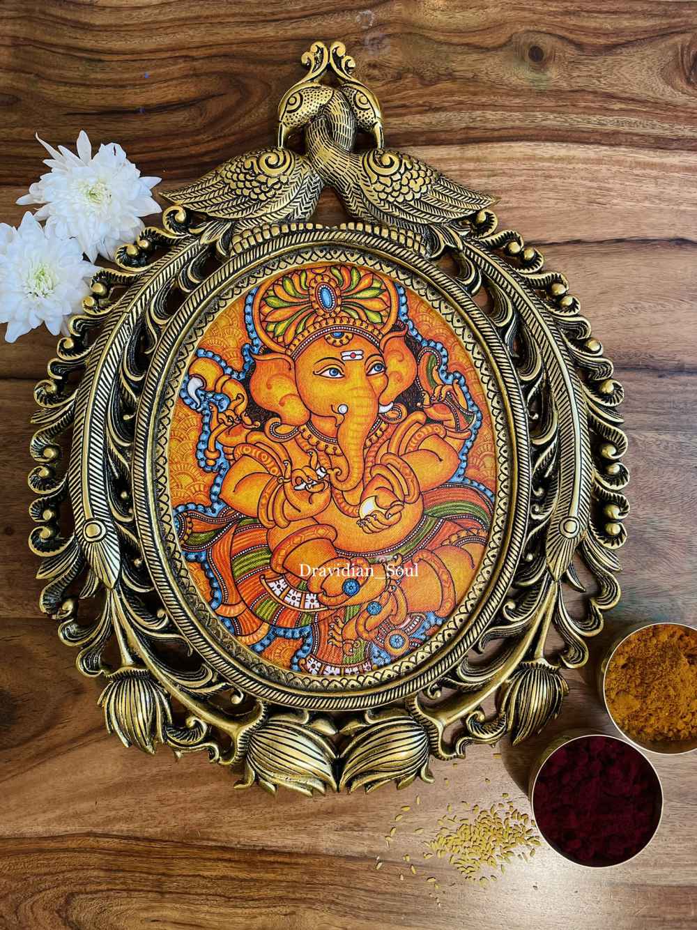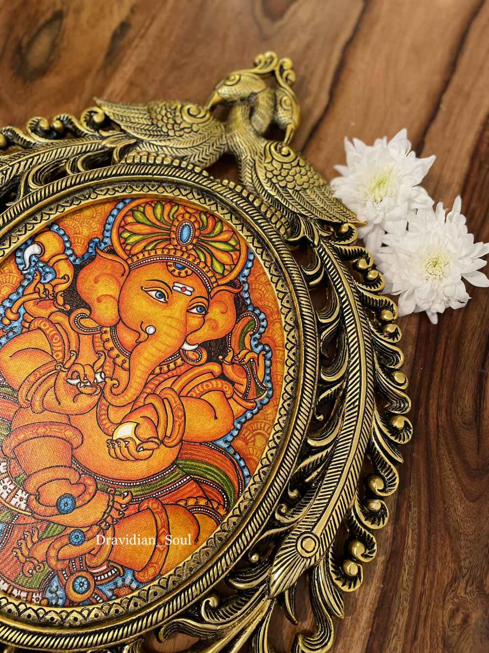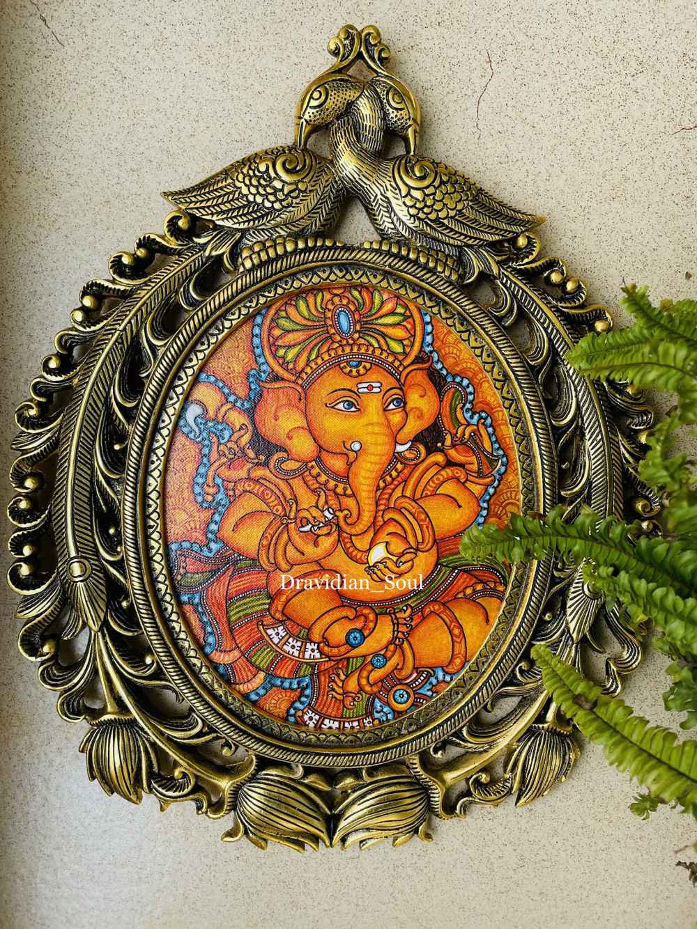Lord Ganesha Hand Painted in Kerala Traditional Mural Painting style and inset in Brass Decorative Wall frame. “Vighnaharatha”, one of the names of Lord Ganesha, means “Remover of Obstacles”. This intricately painted Lord is sure to add ... Read More